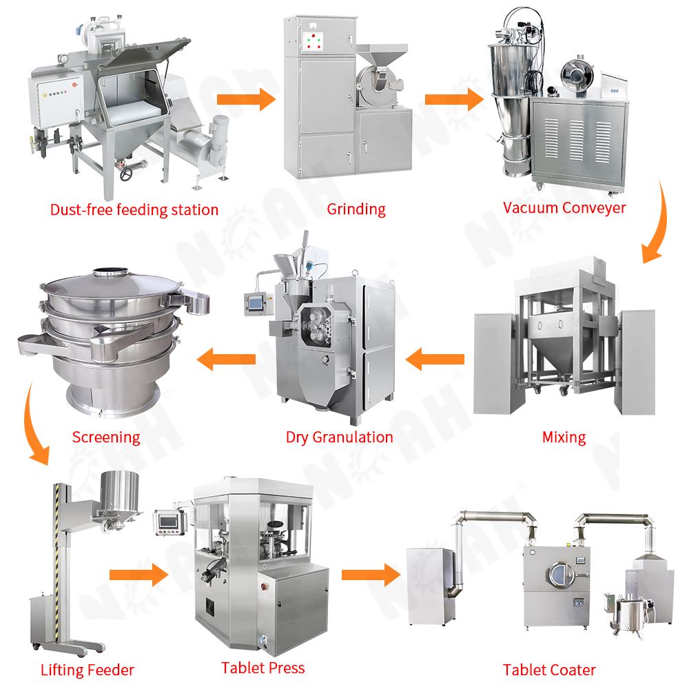 В фармацевтической, химической и пищевой промышленности производственная линия сухой грануляции является ключевой системой для преобразования сырья в высококачественные гранулированные или таблетированные продукты без необходимости использования влаги или растворителей.